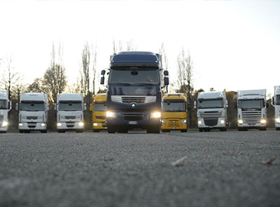 La nostra flotta è composta da una motrice Volvo FE ELETTRICA con cassa isotermica e gruppo frigo FRIGO BLOCK e 12 motrici euro 6.